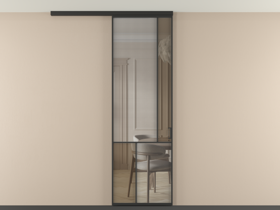 Во всех алюминиевых перегородках, независимо от типа установки, используется компланарный раздвижной механизм, благодаря которому декоративная крышка и полотно находятся в одной плоскости.