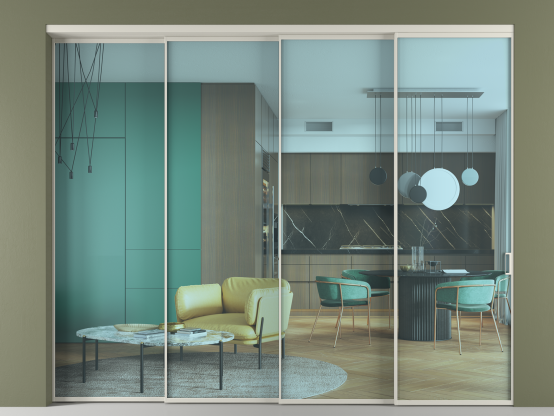 Перегородка Формато внутри проёма 4 створки с синхронным механизмом