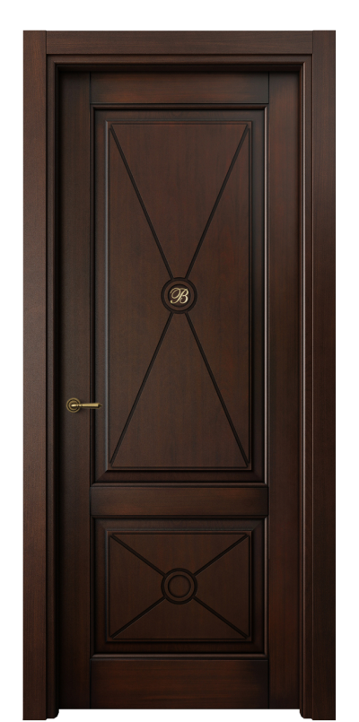 Оригинальным решением в этой коллекции является возможность создания монограммы. Она выполняется в технике инкрустация и подчеркивает очарование образа двери. Базовый вариант — монограмма с буквой В, которая символизирует название компании Волховец. Также мы можем создать индивидуальную монограмму с вашими инициалами. Такое решение может стать прекрасным началом семейной традиции.
